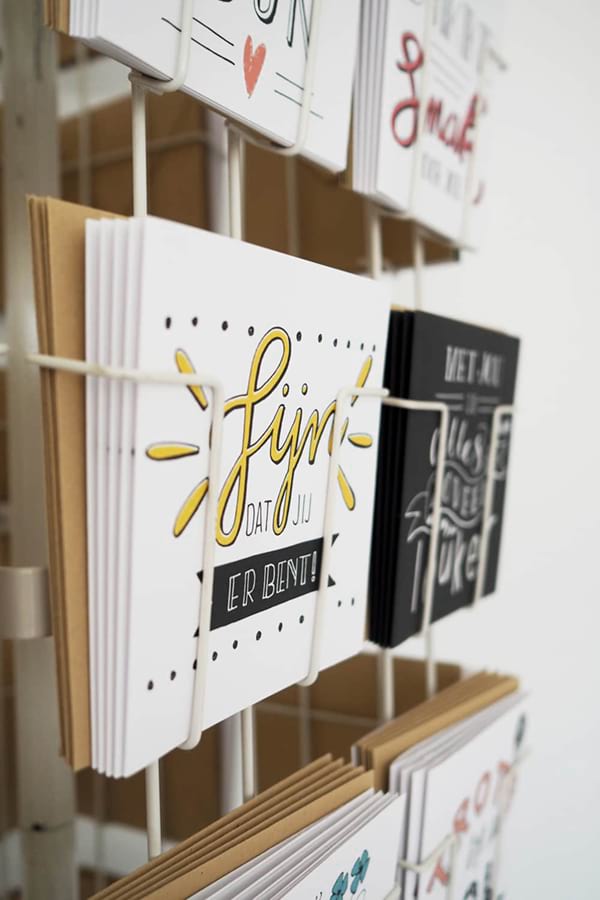 Een spoedje, of ik kaarten wilde ontwerpen voor Hallmark. 40 stuks. Een hele kaartenmolen vól kaarten in handlettering. Getekend door mij. Ik hoefde er niet lang over te denken, maar wel even puzzelen met mijn tijd, want tegelijk schreef ik aan mijn boek Letter Journal en tekende ik aan een grote opdracht voor Jumbo. Wat ontzettend gaaf allemaal (maar aaaah)!