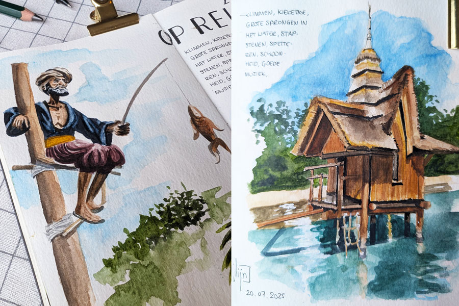 Dompel jezelf een dagdeel volledig onder in Travel sketching. In drie gerichte blokken ga je intensief aan de slag met nieuwe technieken en persoonlijke uitdagingen. Onderbroken door een ontspannen koffietje en lunch, ervaar je hoe tekenen op een hoger niveau voelt. Zonder haast, met focus, ontspanning en voldoening.