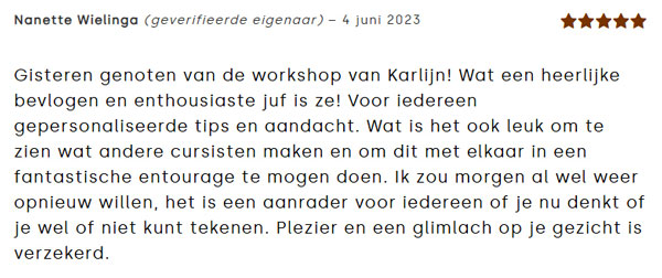 Ik heb genoten en zou een volgende keer graag weer aansluiten want het was echt nog niet klaar! Er is nog zoveel te leren van Karlijn, heerlijk!