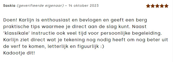 Veel tips om verder te komen, persoonlijke aandacht voor iedereen, zeer geslaagd. Ik kom graag nog eens naar een workshop van jou!